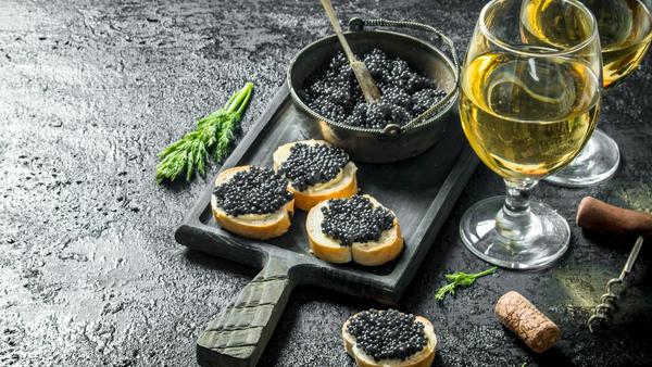 A slightly fruity white wine with citrus notes, acidity, and a lean body is the best backdrop for the briny and creamy caviar: Champagne, Chablis, and Riesling are all great choices.