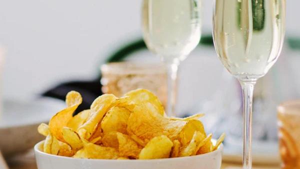 Sparkling wine pairs easily with many foods, but the following in particular taste delicious with a bottle of bubbly: anything salty (potato chips, nuts), creamy or starchy (risotto, creamy cheeses), smoky (smoked salmon or trout), or fried.